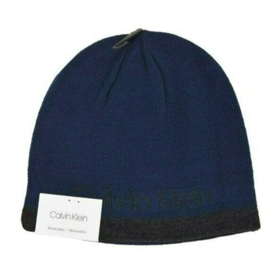CALVIN KLEIN Men's Reversible Navy / Dark Gray Logo Beanie Winter Hat