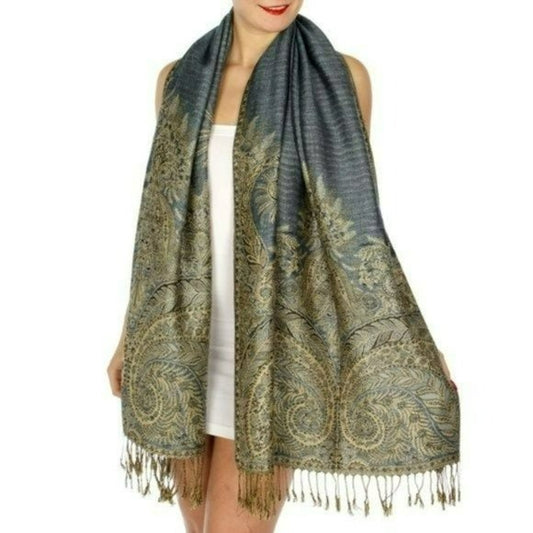 Gorgeous Reversible Paisley Pashmina Shawl Evening Wrap