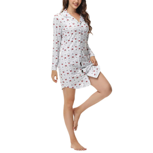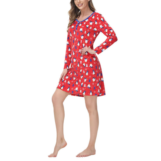 INK + IVY Women's Long Sleeve Christmas Print Notch Collar Sleepshirt Nightgown