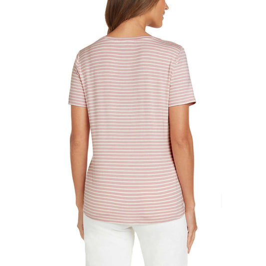 Matty M Women's Stripe Print Tee V-Neck Side Tie T-shirt Top
