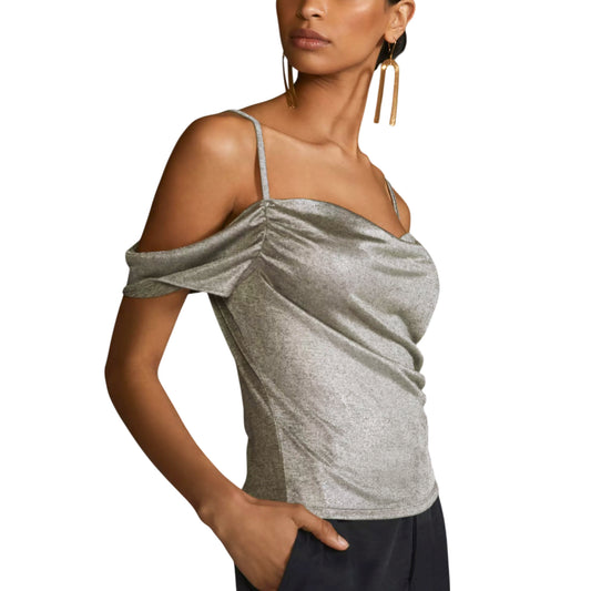 Anthropologie Women's Metallic Cowl Drape Neck Off The Shoulder Blouse Top