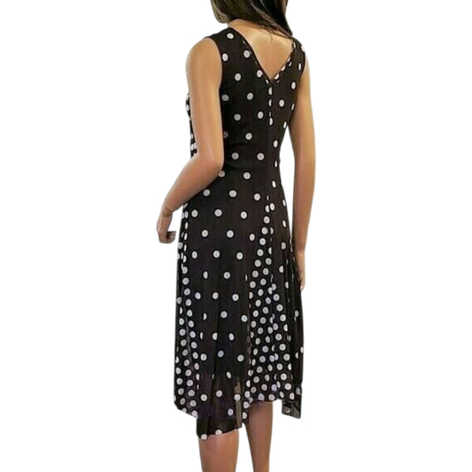 T TAHARI Women's Polka Dot Print Sharkbite Hem Mesh Overlay Midi Dress