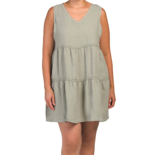 Lucky Brand Women's Plus Linen Sleeveless V-neck Tiered Crochet Detail Mini Dress