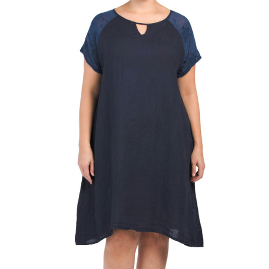 Martina Innocenti Women's Plus Linen Embroidered Sleeve Midi Dress