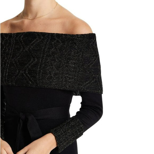 Vince Camuto Women's Metallic Off the Shoulder and Cuffs Knit Cocktail Midi Dress
