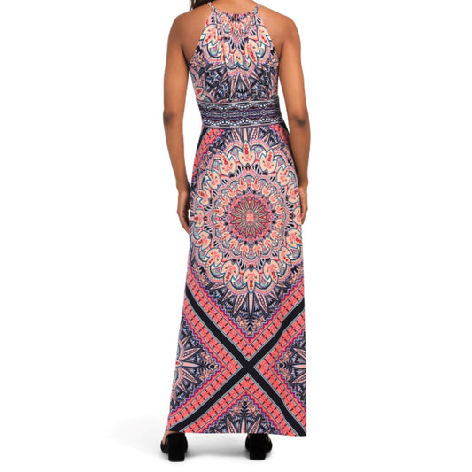 London Times Women's Zig Zag Medallion Printed Keyhole Halter Morris Maxi Dress