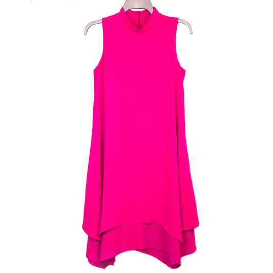 London Times Women's Mock Neck Sharkbite Hem Tiered Shift Mini Dress