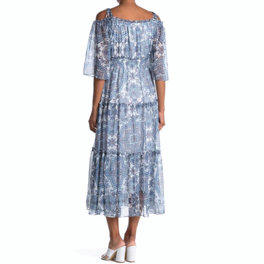 Taylor Women's Off The Shoulder Floral Print Chiffon Smocked Midi Dress
