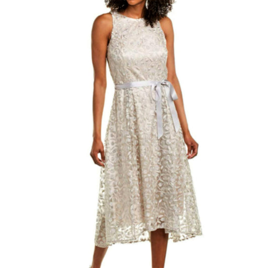 Tahari ASL Women's Floral Embroidered Lace Hi-Low Hem Party Midi Dress