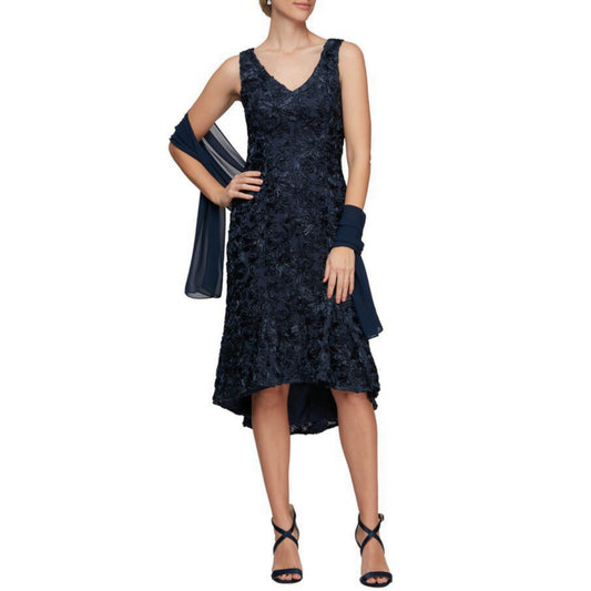 Alex Evening Women's Soutache Embroidered Lace Hi-Low Hem Flounce Midi Dress