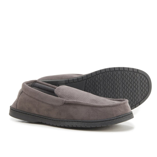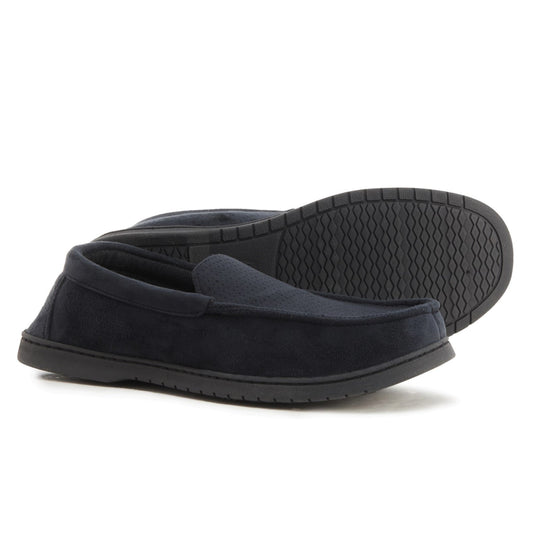 Dearfoams Men's Jason Perforated Microsuede Memory Foam Indoor Outdoor Moccasin Slippers