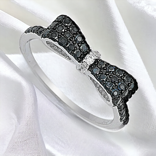 Fashion Women's 925 Sterling Silver Clear Stone CZ Bow Tie Ring