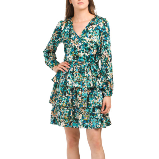 Nicole Miller NY Women's Floral Print Long Sleeve Ruffle Tiered Mini Dress