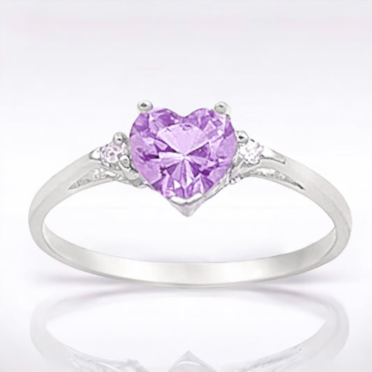 Fashion Women's 925 Sterling Silver Pink Stone CZ Heart Ring