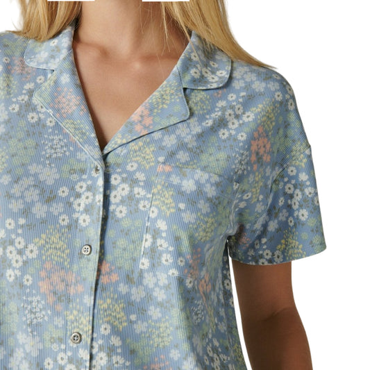 Lucky Brand Women's 2-Piece Floral Print PJ Classic Button Up Top and Shorts Lounge Set