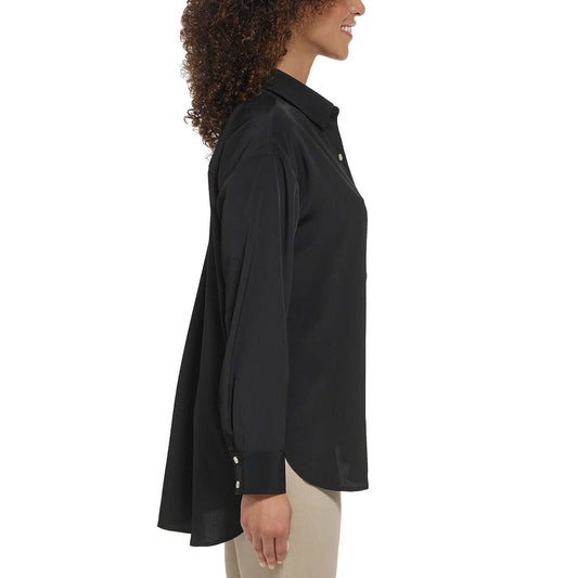 Karl Lagerfeld Women's High-Low Hem Button Front Shirt Long Sleeve Tunic Blouse