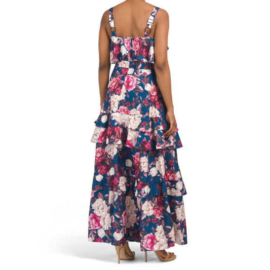 DALIA MACPHEE Women's Floral Print Ruffle Square Neck Maxi Dress