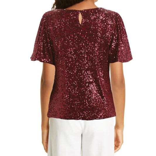 Hilary Radley Women's Flutter Sleave Keyhole Back Sequin Blouse Top