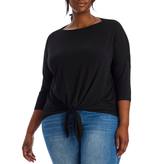 Karen Kane Women's Plus Tie Front 3/4 Dolman Sleeve Boatneck Blouse Top
