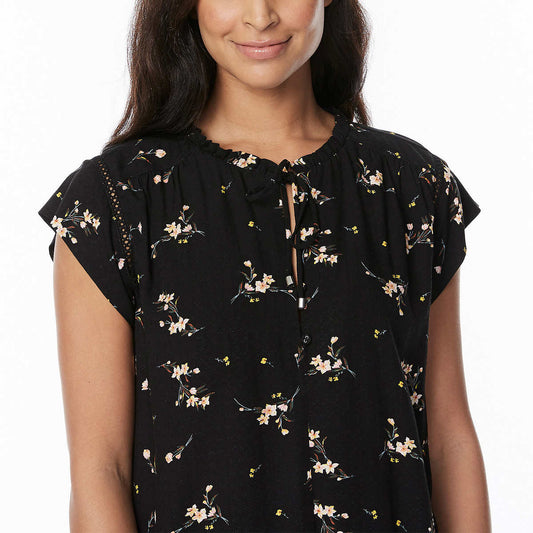 Buffalo Women's Floral Print Flutter Sleeve Lightweight Woven Top Blouse