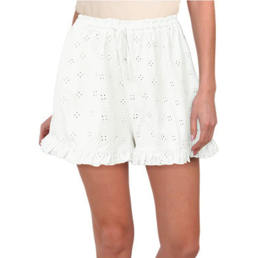 ASOS Cotton Eyelet Broderie Ruffle Trim Tie Waist Shorts