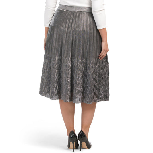 WDNY Women's Plus Metallic Shimmer Pleated Midi Skirt