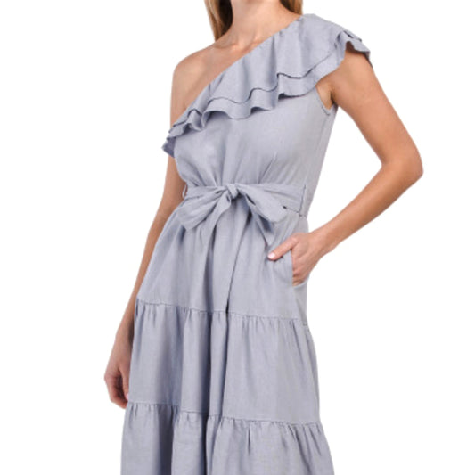 Nicole Miller Women's Asymmetrical One Shoulder Ruffle Trim Linen Tiered Midi DressVendor:Nicole MillerRegular price $58.99Regular priceUnit price per$128.00Sale price $58.99Sale