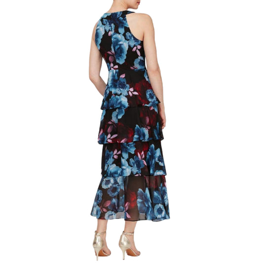 S.L. Fashions Sleeveless Floral Print Flowing Ruffle Tiered Party Maxi Dress