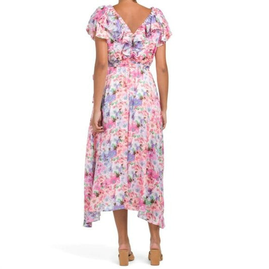 Taylor V-neck Floral Print Flutter Sleeve Hi-Low Hem Maxi Dress