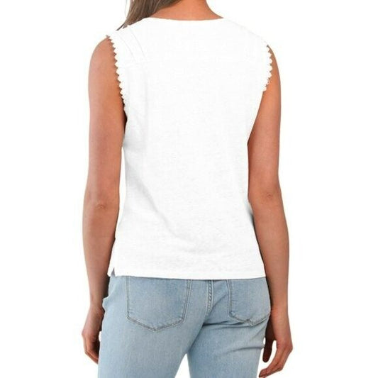 Cyrus Linen / Cotton Blend Eyelet Trim Split Hem Tank Top