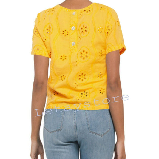 Christian Siriano Women's Linen Cotton Blend Tie-Front Eyelet Blouse Shirt