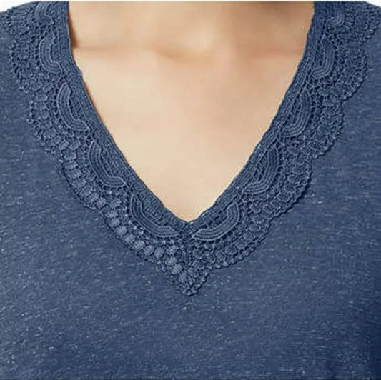 Ella Moss Women's Super Soft Lightweight V-Neck Lace T-Shirt Top