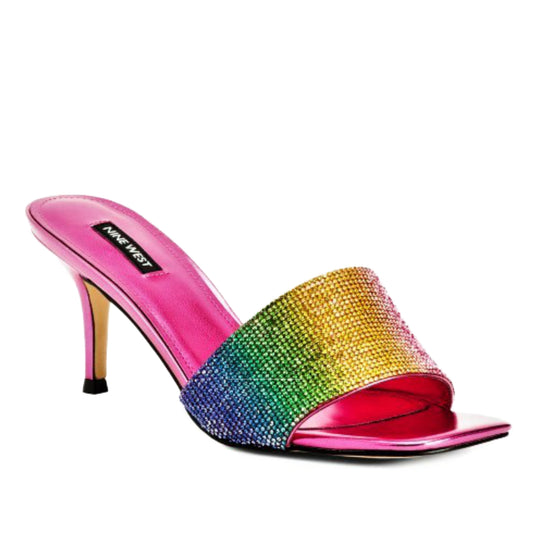 Nine West Rhinestone Rainbow Embellished Slip-On Heels