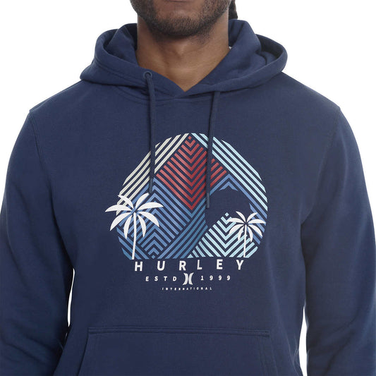 Hurley Men’s Graphic Print Kangaroo Front Pocket Sweatshirt Cotton Blend Hoodie