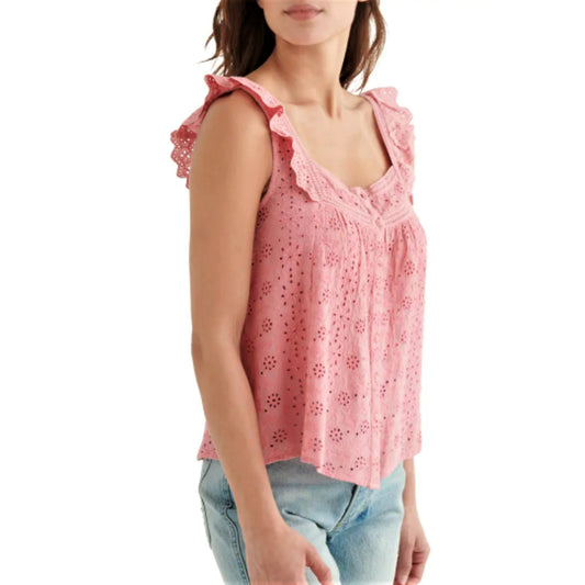 Lucky Brand Embroidered Ruffle Button Down Tank Top
