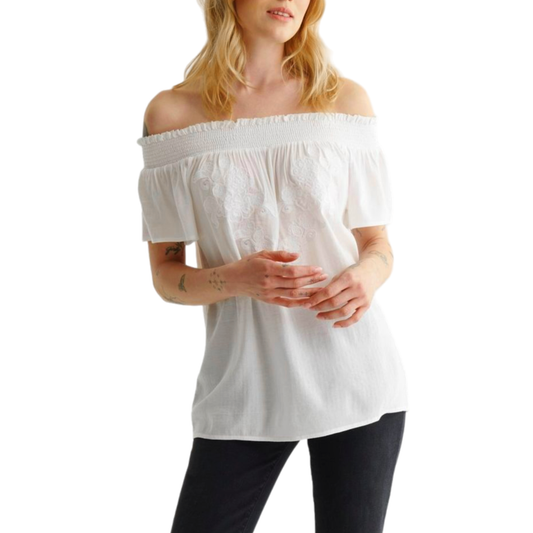 Lucky Brand Women's Off The Shoulder Embroidered Top Blouse