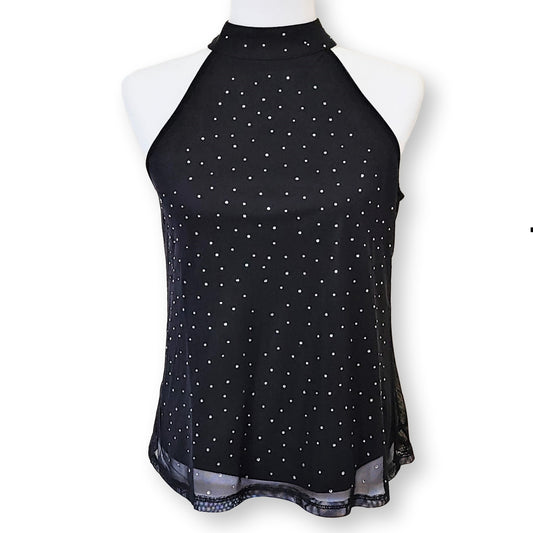 Cable & Gauge Women's Rhinestone Sheer Overlay Halter Top