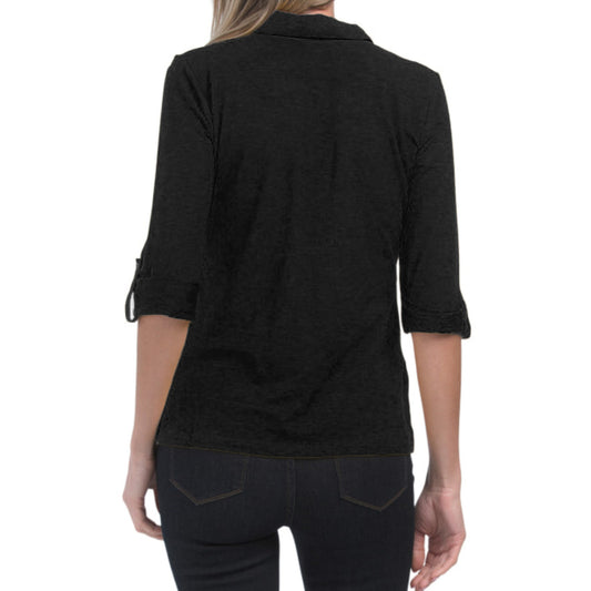 Rachel Zoe Women's Three-quarter Tacked Sleeve V-Neck Classic Collar Top