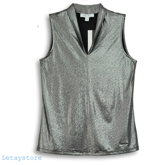 NINE WEST Women's Metallic Shimmer Drapery V-Neck Top