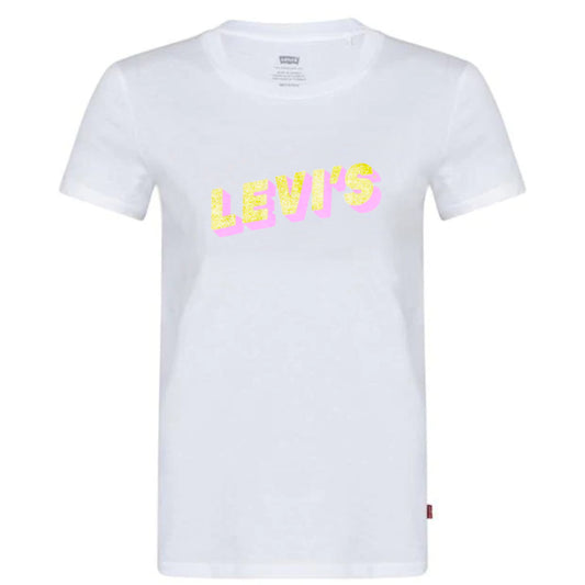 Levi's Women's The Perfect Tee Gold Pink Glitter Logo Print Cotton T-Shirt