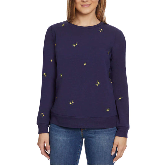 Gloria Vanderbilt Women's Floral Embroidered Crewneck Pullover Sweater Top
