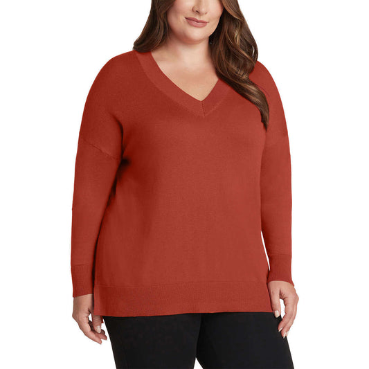 Matty M Women's Lightweight Knit V-Neck Tunic Length Sweater