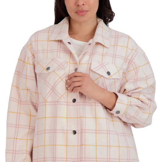 HFX Women's Relaxed Fit Front Snap Cozy Plaid Shirt Jacket