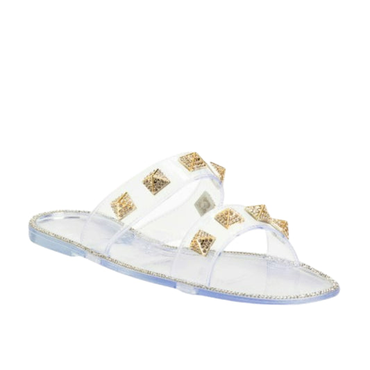 Bamboo Women's Stud Embellished Jelly Flat Slides Sandals