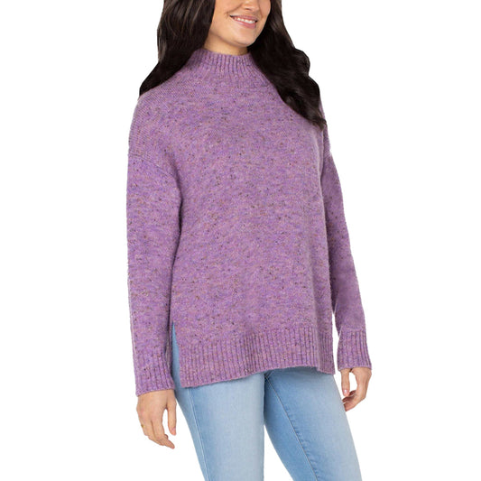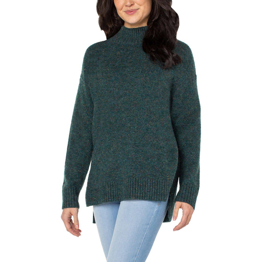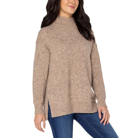 Well Worn Women's Mock Neck High Low Hem Cozy Soft Nep Yarn Sweater