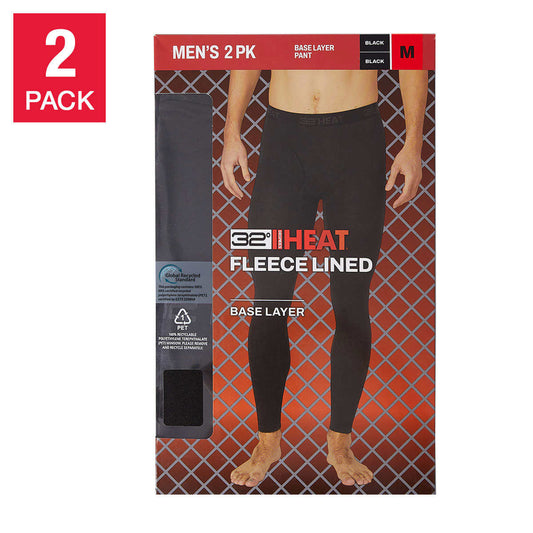 32 Degrees Heat Men's 2-pack Quick Dry Soft Fleece Lined Base Layer Pants