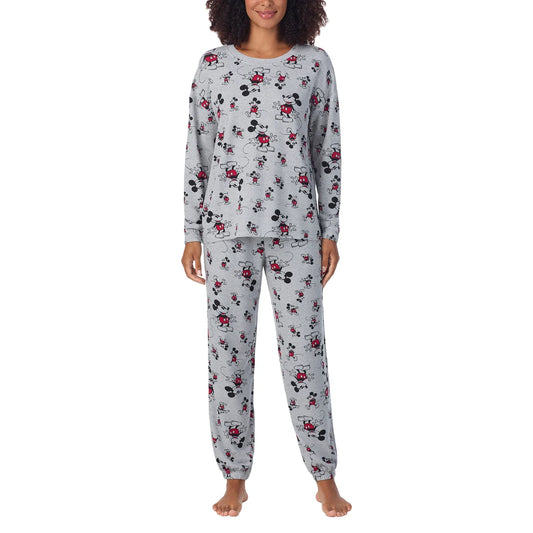 Disney Women's Mickey Mouse 2-Pc Printed Long Sleeve Soft Jersey Pajama Lounge Set