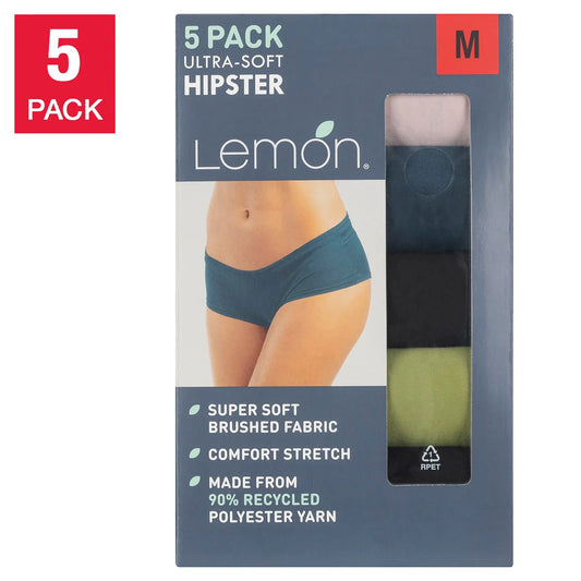 Lemon Women's 5-Pack Ultra Soft Comfort Stretch Hipster Panties