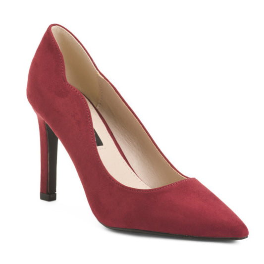 French Connection Women's Pointy Toe Faux Suede Scalloped Pump Heels