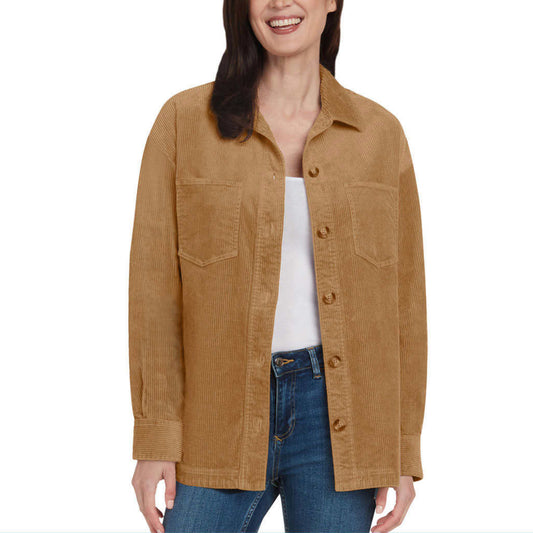 Matty M Women's Corduroy Cotton Blend Relaxed Fit Button Up Shirt Jacket